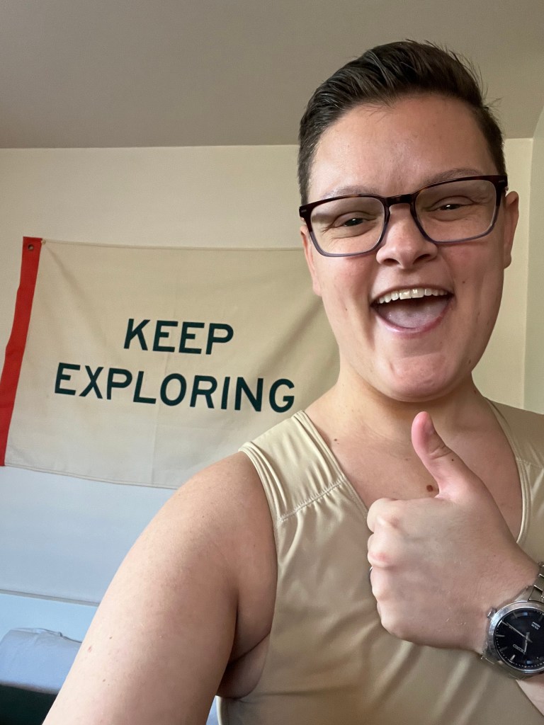 I can’t lie and say this whole process has been smooth. Not everyone has responded with kindness or understanding. I faced transphobic comments, providers, and processes going through the nearly year-long, grueling slog of getting this surgery approved and scheduled. I had a lot of struggles, feeling that this was selfish or too much – that I was selfish or too much. Maybe I should be smaller. Maybe my needs don’t matter. Maybe comfort and confidence weren’t meant for me.